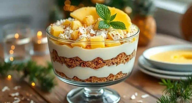 Uma sobremesa leve e cremosa de ananás que combina simplicidade e frescura tropical em cada colher.