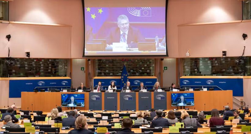 O Parlamento Europeu congela o acordo comercial com os EUA após Trump anunciar tarifas globais que ameaçam violar os termos do pacto.