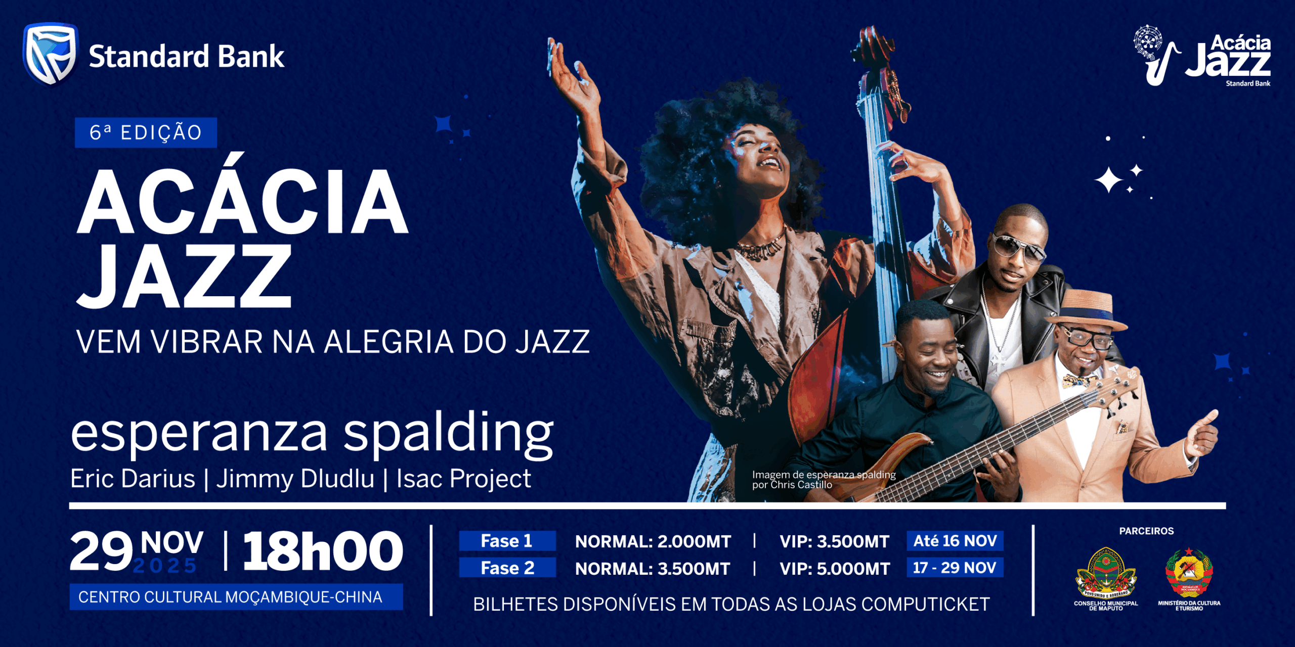 Esperanza Spalding, Eric Darius, Jimmy Dludlu e Isac Project unem-se para brindar os amantes do jazz com um espetáculo inesquecível.