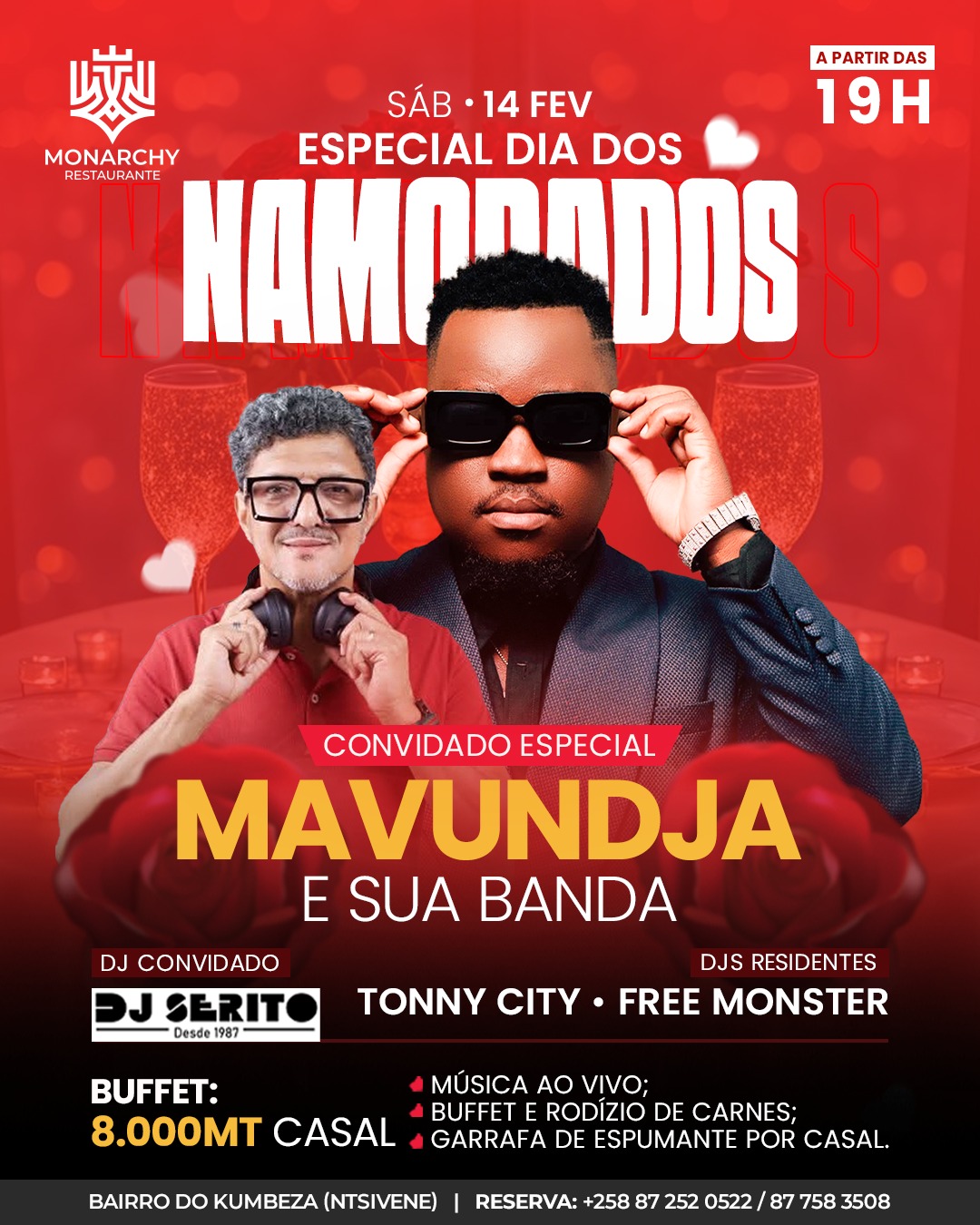 O Monarchy Restaurante convida todos os casais para uma celebração especial do Dia dos Namorados, no sábado, 14 de fevereiro, a partir das 19h, no Bairro do Kumbeza (Ntsivene).