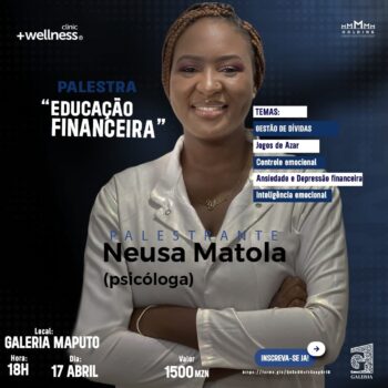 No dia 17 de abril ,na Galeria de Maputo , teremos uma palestra imperdível onde vamos abordar temas essenciais para o teu bem-estar financeiro e emocional: