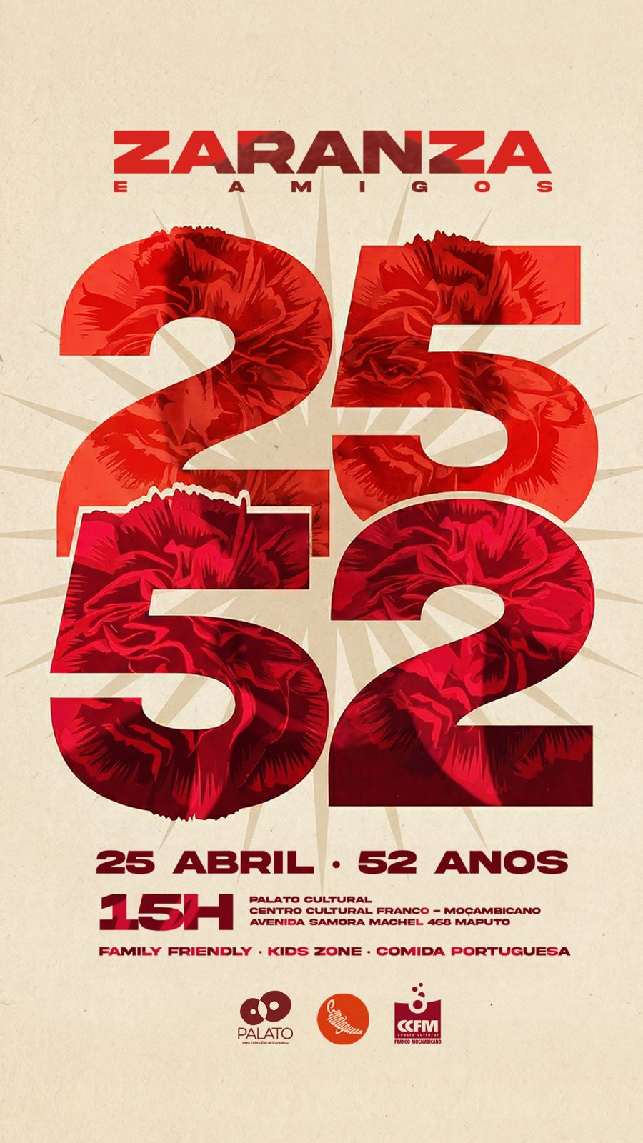 🎉 Um encontro vibrante de celebração, cultura e partilha, inspirado pelo espírito da Revolução dos Cravos, onde música, gastronomia e alegria se juntam para assinalar esta data histórica.