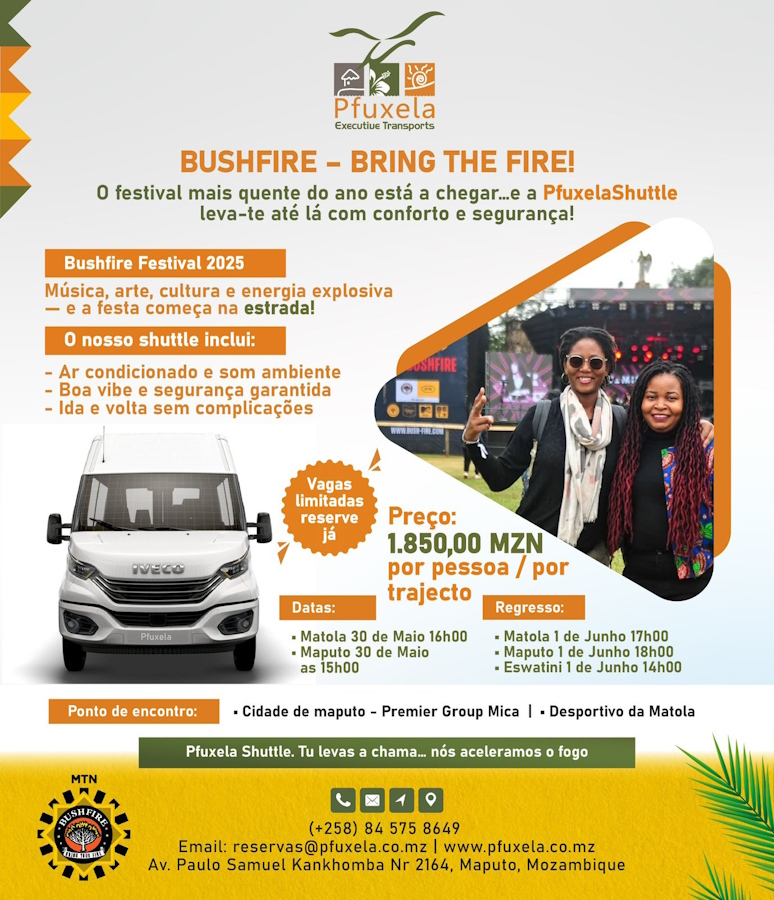 Informações complementares: Pfuxela Transport Pass – Bushfire 2025 (VOLTA) – Este bilhete dá acesso apenas ao transporte de regresso.